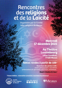 A l’initiative de la municipalité de Meaux est organisée une journée des religions et de la laïcité le mercredi 17 décembre prochain à la médiathèque du Luxembourg à Meaux.